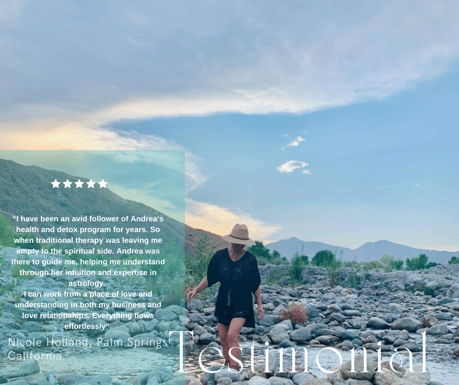 Andrea’s expertise on recognizing when a cycle is over, has served its purpose or is Saturnian or “karmic” in nature is a unique offering specifically related to partnerships and relationships. Utilizing both western and Vedic astrology along with healing modalities, Andrea will guide you in the realm of healing your current union, or guiding you gently out of the karmic cycle.